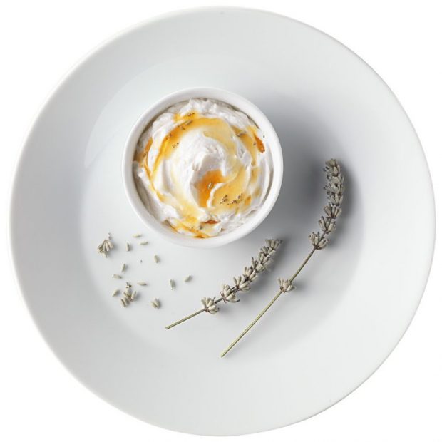 - Mettere i fiori di lavanda in infusione con il miele per 10 minuti circa. In un frullatore mettere il Parmigiano Reggiano e il latte, avendo cura di aggiustare di sale e pepe. Filtrare il risultato con