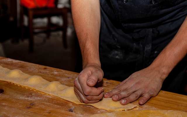Per cui, innanzitutto, preparate un impasto di pasta all’uovo emiliana con tre uova e 350 g di farina (se la trovate, scegliete quella per cui in etichetta è indicato per pasta fatta in casa: di solito ha una granulometria meno fine, che consente u n risultato migliore di quello ottenuto con la farina per uso “universale”).